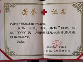 負責任,有擔當,是天津百利展發集團的企業文化基點。面對這次建國以來最大的疫情,公司表現出了大愛無私的優秀品格,通過捐款,希望能為抗擊疫情盡一份綿薄之力,也以此向在疫情防控工作中各方力量的辛勤付出表示敬意!